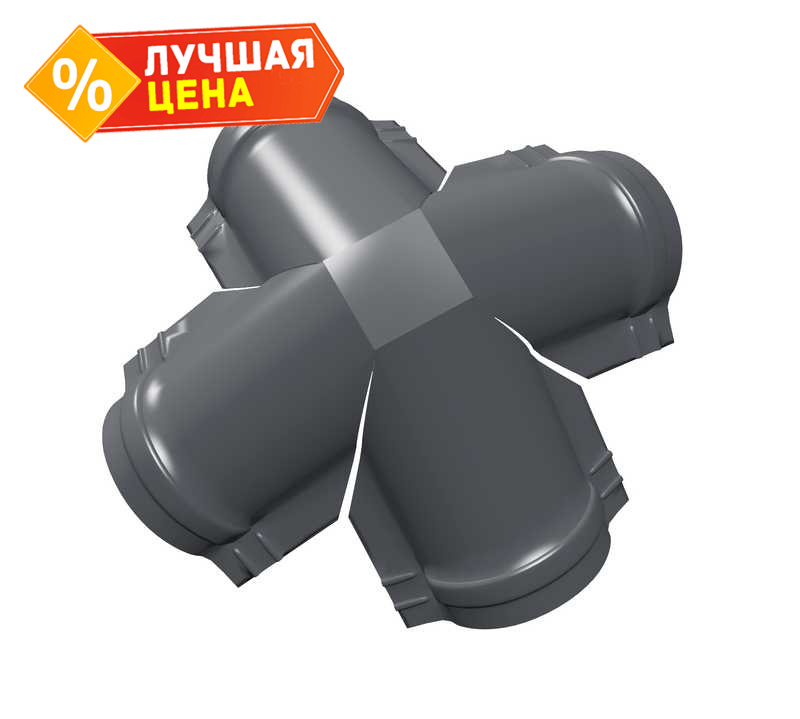 Четверник конька полукруглого GreenCoat Pural BT, matt с пленкой RR 23 темно-серый (RAL 7024 мокрый асфальт)