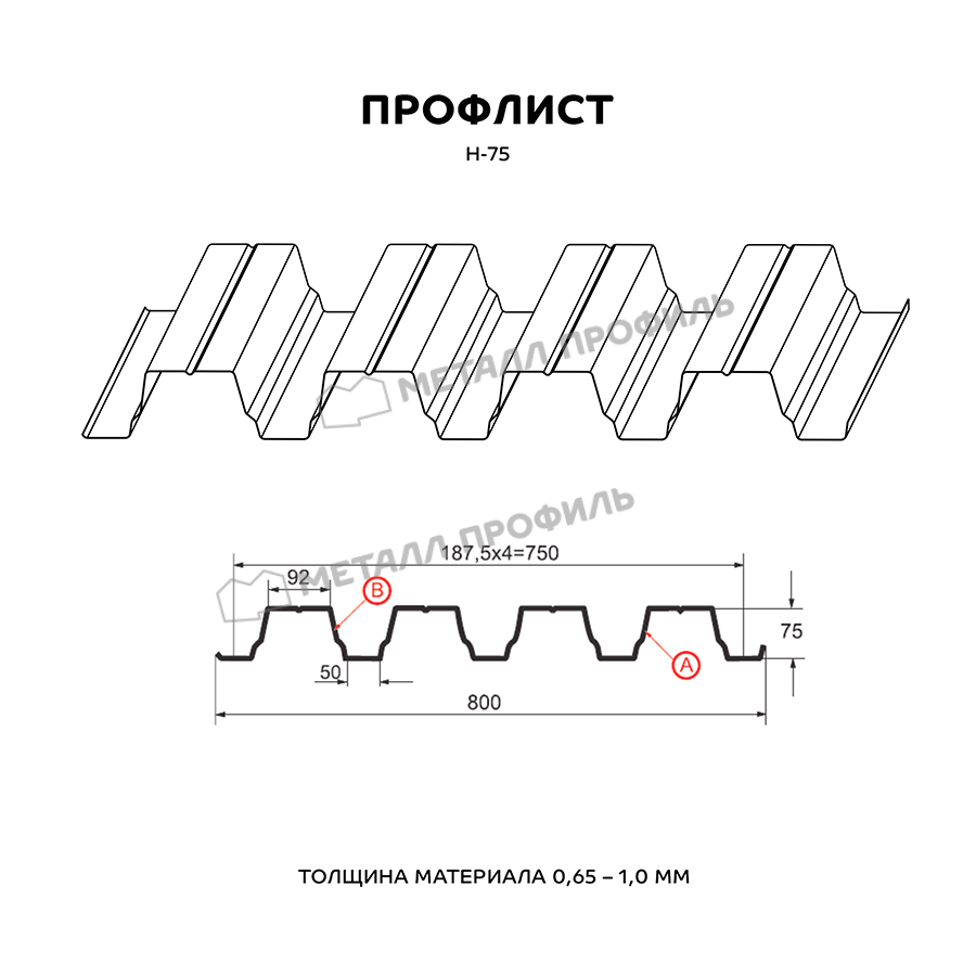 Профиль Н-75 обладает высокой прочностью и устойчивостью к внешним воздействиям, что делает его надежным и долговечным решением для кровли и фасадов.