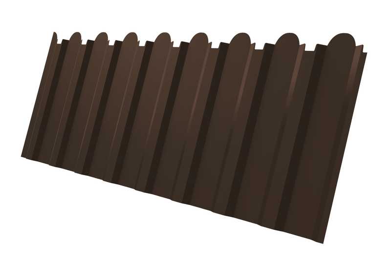 Профлист Grand Line фигурный С20В Полиэстер - double 0.45 мм RAL 8017 Шоколад - это качественный и прочный материал, предназначенный для использования в строительстве и отделке. Профлист имеет фигурную форму, которая придает ему эстетическое и оригинальное оформление. Толщина листа составляет 0.45 мм, что обеспечивает надежность и долговечность конструкции. Полиэстеровое покрытие делает профлист устойчивым к воздействию атмосферных условий, ультрафиолетового излучения и коррозии. Цвет RAL 8017 Шоколад придает материалу элегантный и стильный вид, который легко впишется в любой дизайн. Профлист Grand Line фигурный С20В Полиэстер - double 0.45 мм RAL 8017 Шоколад идеально подходит для создания крыш, фасадов, заборов и других строительных конструкций, обеспечивая надежную защиту и привлекательный внешний вид.